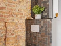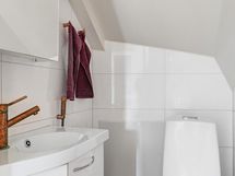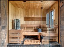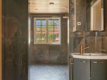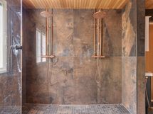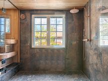 - Kylpyhuone, kodinhoitohuone, sauna. Joka kerroksessa erillinen wc (yht. 3 kpl). Kylpyhuoneessa, kaksi sadesuihkua, suihkuseinät, sauna sähkökiukaalla. Erilliset wc:t: peilit, peilikaappi, allaskaappit, hanat (kupari).