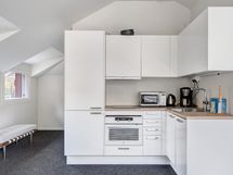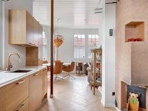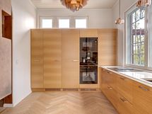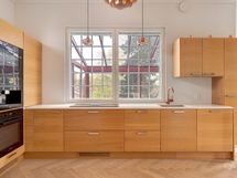 - Kalusteintegroidut kodinkoneet (Miele), kupari hana ja alta huullettu allas, jääkaappi (täyskorkea), pakastekaappi (täyskorkea), induktioliesi liesituulettimella (Elica), kiertoilmauuni, mikroaaltouuni, astianpesukone, kahvikone. Kvartsikomposiittitasot, apteekkarin kaappi, kaapistojen ovet tammiviilua.