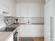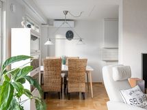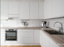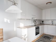 - Keittiön varusteet: Jääkaappi, erillinen pakastin, erillisuuni, liesi, liesituuletin ja astianpesukone. Liesi: Induktioliesi.