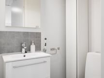 - Pesutilojen varusteet: Suihku, suihkuseinä, pesukoneliitäntä, peilikaappi, allaskaappi ja pesuallas. Erillisten WC:n lukumäärä: 1. Erillisen WC:n varusteet: WC-istuin, bidee-suihku, peilikaappi ja pesuallas.