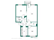 - Ulostyönnetty parveke. Parvekkeen ilmansuunta: Lounas