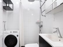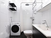 - Pesutilojen varusteet: WC-istuin, suihku, pesukoneliitäntä, peilikaappi, allaskaappi ja bidee-suihku. Pesutilojen kuvaus: Pesutilat modernisoitu, mm uudet suihkulaitteistot, valaisimet ja allaskaappi asennettu.