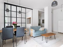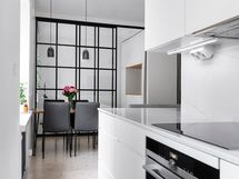 - Keittiön varusteet: Jääkaappi (Laatikostojääkaappi Liebherr), erillisuuni (Itsepuhdistuva kiertoilmauuni), liesi (Induktio), liesituuletin (Siemens), astianpesukone (Bosch), erillinen pakastin (Electrolux) ja mikroaaltouuni (Integroitu mikroaaltouuni Bosch). Liesi: Induktioliesi. Työtason materiaali: Kvartsikomposiitti. Täydellisesti remontoitu avokeittiö (Kvik), laadukkailla kodinkoneilla ja kekseliäillä ratkaisuilla.