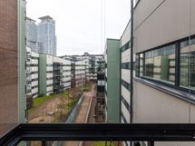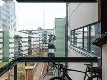 Suurelta, lasitetulta parvekkeelta avautuvat rauhalliset sisäpihanäkymät. Parveke toimii keväästä syksyyn täydellisenä lisähuoneena, jossa voit nauttia auringosta, aamukahvista tai kesäilloista omassa rauhassa.