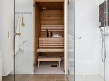 Asunnon selkeät neliöt tarjoavat poikkeuksellista mukavuutta – kaksi kylpyhuonetta, tilava saunallinen kylpyhuone sekä ylellinen, valoisa makuuhuone tuovat arkeen ripauksen luksusta.