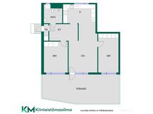 - Kylpyhuone, suihku/suihkukaappi, peilikaappi, allaskaappi, rättipatteri, pesukoneliitäntä, wc ja lattialämmitys