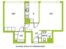 - Astianpesukoneliitäntä, jääkaappi-pakastin, keraaminen liesi, liesituuletin. Pintamateriaalit/ lattia: Parketti. Pintamateriaalit/ seinä: Maalattu