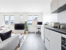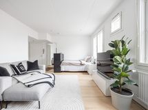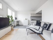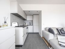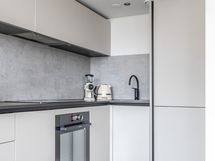 - Aran cucinen keittiö, allas, induktioliesi, uuni, liesituuletin, jääkaappipakastin. Kodinkoneet integroitu. Maalatut seinät ja laattalattia