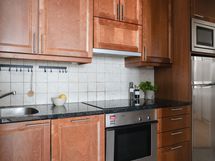 - Liesi: keraaminen, erillisuuni. Kylmäsäilytys: jenkkikaappi. Varustus: liesituuletin, mikroaaltouuni, astianpesukone, kiinteät valaisimet.