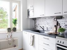 - Keittiön varusteet: Jääkaappipakastin, liesi, liesituuletin, mikroaaltouuni ja astianpesukone. Liesi: Keraaminen liesi. Työtason materiaali: Laminaatti. Keittiöstä näkymät pihapuiden latvustoon, remontoitu putkiremontin yhteydessä 2018.