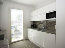Keittiön varusteet: Jääkaappipakastin ja liesi. Liesi: Induktioliesi.
