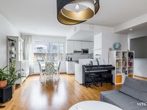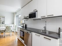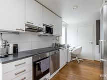 - Keittiön varusteet: Jääkaappipakastin, uuni, astianpesukone, liesi, keittiösaareke ja liesituuletin. Liesi: Keraaminen liesi.