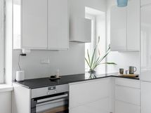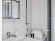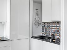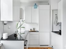 Vuonna 2017 remontoitu keittiö on ajaton ja kaunis. Vaalean keittiön katseenvangitsijana toimii ihastuttava välitilan laatoitus, jonka materiaali on tuotu tätä keittiötä varten Espanjan Alicantesta. Keittiön neliöt ovat kompaktit, mutta tilassa on valoa ja reilusti työskentely- sekä säilytystilaa. Eteisen vieressä sijaitseva kylpyhuone on remontoitu putkistosaneerauksen yhteydessä vuonna 2005.