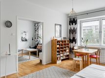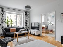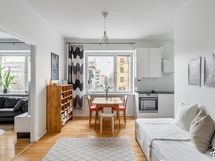 Kodin tunnelma on kutsuva, sillä asunnon yhtenäiset tilat luovat selkeän ja eheän kodin, jonka ovesta mielellään astuu työpäivän päätteeksi sisään. Asunto sopii niin pariskunnalle kuin sinkkutaloudellekin, ja mikseipä tilat toimisi pienen lapsenkin kanssa.
