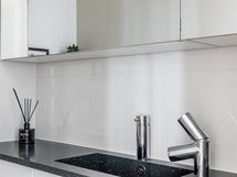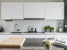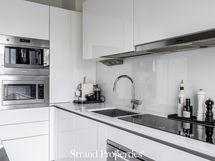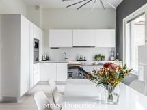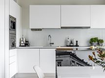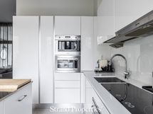 - Induktioliesi (Smeg), Uuni (Smeg), Kahvikone (Smeg), Mikroaaltouuni (Smeg), integroitu astianpesukone (Miele), Jääkaappi (Elektrolux), Pakastin (Smeg), liesituuletin (Smeg). Kvartsikivitasot, välitilassa maitolasi, erillinen keittiösaareke, jossa rosteritaso. Lattia tammilankkua.