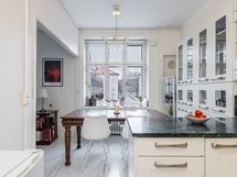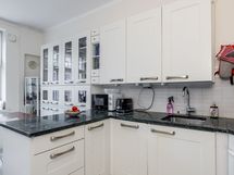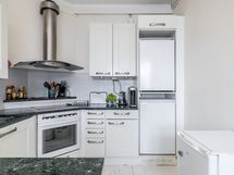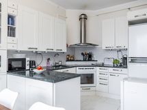 - Keittiön varusteet: Jääkaappi, erillinen pakastin, erillisuuni, liesi, liesituuletin, astianpesukone ja keittiösaareke. Liesi: Keraaminen liesi. Työtason materiaali: Kivi.