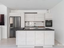 - Noblessa-keittiö, työtasot laminaatti. Side by side jääkaappi ja pakastin, jääpala ja jäämurska-automaatti. Induktiotaso Elica NikolaTesla integroidulla liesituulettimella. Kiertoilmauuni, jossa mikro ja höyryuuni. Astianpesukone.