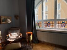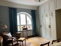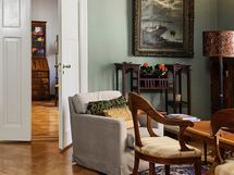 Jo sisään astuessa huomaa, että kyse ei ole tavallisesta kerrostaloasunnosta. Huonekorkeus on noin 3,2 metriä, ikkunat ovat suuret ja huoneiden mittakaava muistuttaa enemmän kaupunkikartanoa kuin modernia kerrostaloa. Valo kulkee tilasta toiseen ja korostaa harmonisia mittasuhteita.