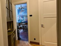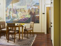 Keittiön yksityiskohtana on Santeri Salokiven 30-lukulaista maalausta Helsingin kauppatorilta mukaileva fresko, tuo keittiöön taiteellisen vivahteen.