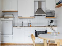 - Varusteet: Jääkaappipakastin, Astianpesukone. Työtaso: Laminaattitaso. Liesi: Keraaminen liesi, Erillisuuni