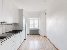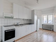 - Keittiön varusteet: Jääkaappipakastin, uuni, liesi ja liesituuletin. Liesi: Keraaminen liesi. Työtason materiaali: Laminaatti. Tilava keittiö missä hyvin tilaa myös ruokaryhmälle. Keittössä on alkuperäinen seinäkulmakaappi ja yksi alkuperäinen yläkulmakaappi.