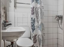 - Kylpyhuone, suihku, peilikaappi, lattialämmitys (sähkö).