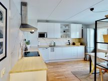 - Liesi: keraaminen. Työtasot: laminaatti. Kylmäsäilytys: jääkaappi/pakastin. Varustus: astianpesukone, liesituuletin / suodatin. Välitila: Granitti