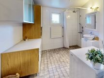 - Pesutilojen kuvaus: Hanat uusittu 2019. Varustus: pesukoneliitäntä, lattialämmitys, wc-istuin, suihku, kylpyhuonekaapisto.