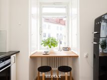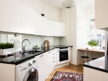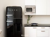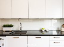 - Keittiön varusteet: Jenkkikaappi (SMEG), erillisuuni, astianpesukone, liesituuletin, mikroaaltouuni ja pesukoneliitäntä. Liesi: Induktioliesi. Työtason materiaali: Kivi.