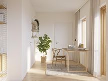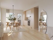 - Kylpyhuonekaapisto, suihku, peili, pesukoneliitäntä, lattialämmitys, kiinteät valaisimet. Rakennusaikana voit suunnitella keittiösi materiaalit ja sisustuksen makusi mukaan kolmesta tyylikkäästä teemavaihtoehdosta.