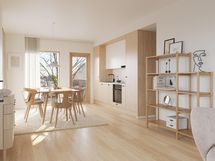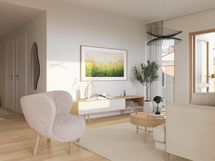 - Kylpyhuonekaapisto, suihku, peili, pesukoneliitäntä, lattialämmitys, kiinteät valaisimet. Rakennusaikana voit suunnitella keittiösi materiaalit ja sisustuksen makusi mukaan kolmesta tyylikkäästä teemavaihtoehdosta.