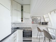 Keittiön varusteet: Jääkaappipakastin ja astianpesukone. Liesi: Induktioliesi.