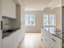 Kauttaaltaan laadukkaat materiaalit, esim. Puustellin keittiö kvartsitasolla, AEG:n laadukkaat kodinkoneet ml. induktiotaso liesituulettimella sekä kiertoilma- /höyryuuni. Lattiassa on laadukas Kährs:in 1-sauvainen parketti. Kylpyhuoneessa seinällä upeat laattapisteen 60x60 laatat ja Dansanin kalusteet, Hansgrohen sadesuihkut, linjakaivo ja puhdistava seinä-wc.