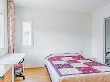 Makuuhuone: Vaatekaapistot/vaatehuone. Lattia: Tammiparketti. Seinät: Maalattu.