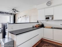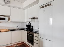 - Keittiön varusteet: Jääkaappipakastin, liesi, liesituuletin, uuni ja astianpesukone. Liesi: Keraaminen liesi. Työtason materiaali: Laminaatti. Hyväkuntoinen avokeittiö.