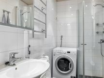 - Varustus: suihkuseinä, pesukoneliitäntä, lattialämmitys, wc-istuin, suihku, peilikaappi, kiinteät valaisimet.