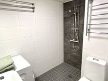 - Pesukonevalmius, peilikaappi, suihku, allaskaappi, tilava pyykkikaappi, rättipatteri, laattalattia, laattaseinä