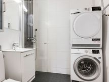 - Suihku, Pesukone, Pesukoneliitäntä, Kuivausrumpu, Tilaa pesukoneelle, Käsisuihku, Kaapisto, Allas, Suihkuseinä, WC-istuin, Peili