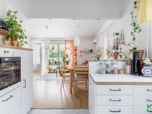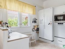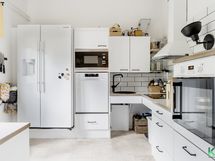 - Jääkaappi, pakastin, kiertoilmauuni, induktioliesi, liesituuletin hormiin, keittiön tasojen korkeus 80 cm, lattialämmitys, mikroaaltouuni, astianpesukone