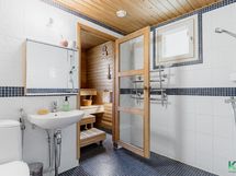 - kylpyhuone, sauna, peilikaappi, suihku, lattialämmitys, wc. erillinen wc: kaapistot