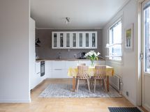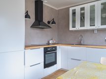 - Paljon kaappitilaa, Paljon työskentelytilaa, Puutasot, Lasikaapit, Integroidut koneet, Induktioliesi, Jää-pakastinkaappi