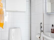 - Kylpyhuone, erillinen wc, suihku, suihkuseinä ja suihkuverho, peilikaappi sekä wc:ssä että kylpyhuoneessa, kaapit wc-istuimen päällä kaappi, allaskaappi sekä wc:ssä että kylpyhuoneessa, pesukoneliitäntä kylpyhuoneessa, kiinteät valaisimet peilikaapeissa ja upotetus spotit katossa. Pyyhepatteri vesikiertoinen, kylpyhuoneessa