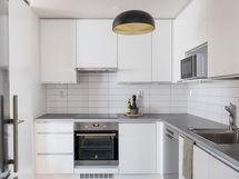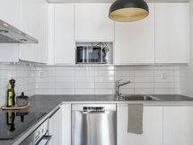 jääkaappi/pakastin, astianpesukone (uusittu), erillisuuni, induktioliesi (uusittu), mikroaaltouuni sekä liesituuletin.