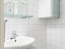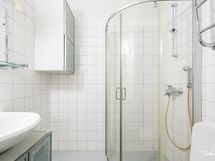 - Pesutilojen varusteet: WC-istuin, suihku, suihkuseinä, pesukoneliitäntä, peili, pesuallas ja allaskaappi. Pesutilojen kuvaus: Putkiremontin yhteydessä vuonna 2003 uusittu kylpyhuone josta löytyy pesukoneliitäntä ja suihkuseinä.