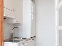 - Keittiön varusteet: Jääkaappipakastin, uuni, liesi, liesituuletin ja astianpesukone. Liesi: Keraaminen liesi. Työtason materiaali: Puu. Tyydyttäväkuntoinen keittonurkkaus olohuoneen yhteydessä. Keittiön saa kätevästi piiloon ovien taakse.