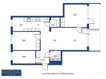 - Pinta-alan peruste: Yhtiöjärjestyksen mukainen ja isännöitsijäntodistuksen mukainen. Ei tarkistusmitattu. Pinta-alat saattavat tämän ikäisissä kohteissa (yhtiö rekisteröity ennen 01.01.1992) poiketa olennaisestikin asuinrakennusten nykyisten mittaustapojen ja standardien (SFS 5139) mukaan laskettavasta asuintilojen pinta-alasta. Pinta-ala voi siis olla edellä mainittua pienempi tai suurempi. Pinta-alat saattavat tämän ikäisissä kohteissa (yhtiö rekisteröity ennen 01.01.1992) poiketa olennaisestikin asuinrakennusten nykyisten mittaustapojen ja standardien (SFS 5139) mukaan laskettavasta asuintilojen pinta-alasta.