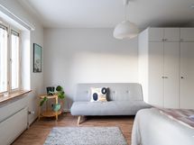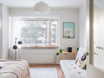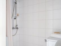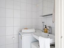 - Varustus: pesukone, pesukoneliitäntä, lattialämmitys, wc-istuin, peili, kiinteät valaisimet, kylpyhuonekaapisto.