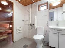 - Suihku, Pesukoneliitäntä, Mukavuuslattialämmitys, Tilaa pesukoneelle, Käsisuihku, Kaapisto, Allas, WC-istuin, Peilikaappi