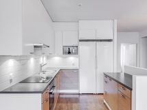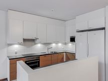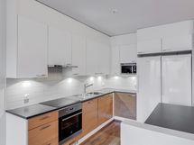- Keittiön varusteet: Jääkaappi, erillinen pakastin, liesi, liesituuletin, erillisuuni ja astianpesukone. Liesi: Keraaminen liesi. Työtason materiaali: Laminaatti.