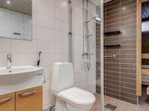 - Pesutilojen varusteet: WC-istuin, suihku, suihkuseinä, pesukoneliitäntä, lattialämmitys, allaskaappi, peilikaappi, bidee-suihku ja pesuallas. Erillisten WC:n lukumäärä: 1. Erillisen WC:n varusteet: WC-istuin, bidee-suihku, pesuallas, peilikaappi ja allaskaappi.